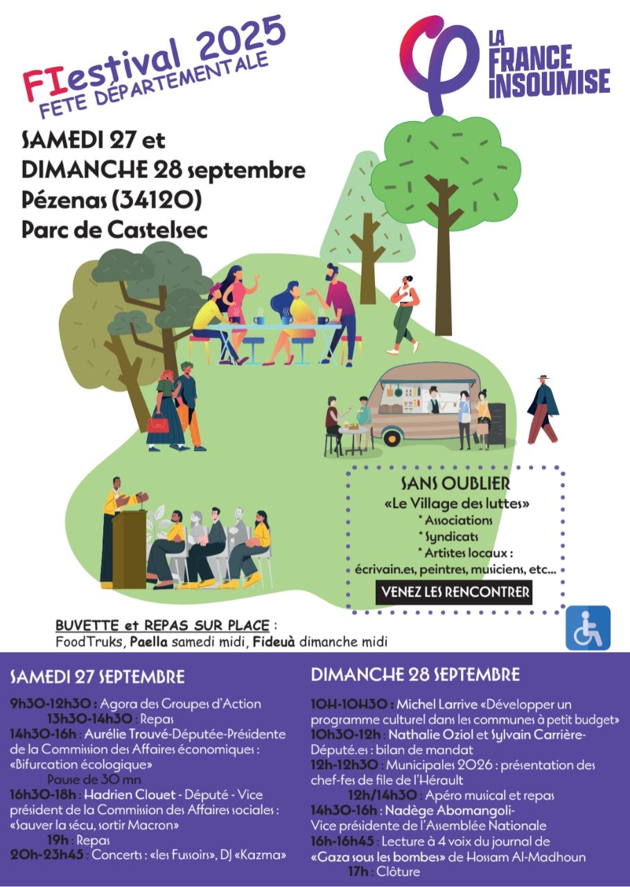 FIestivale 2025- Pézenas 27-28 sept 2025SANS OUBLIER : Village des luttes, associations, syndicats, artistes locaux psl29 août 2025Evènements_psl