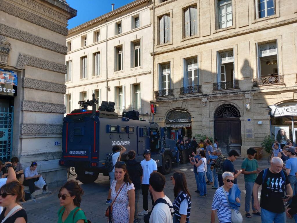 Les membres du Groupe d’Action (GA) des Insoumis de Canaules (30) ont fait la connaissance d’un nouveau camarade, qui risque fort d’accompagner nombre de manifestants durant leurs déambulations protestataires : le blindé de gendarmerie Centaure.